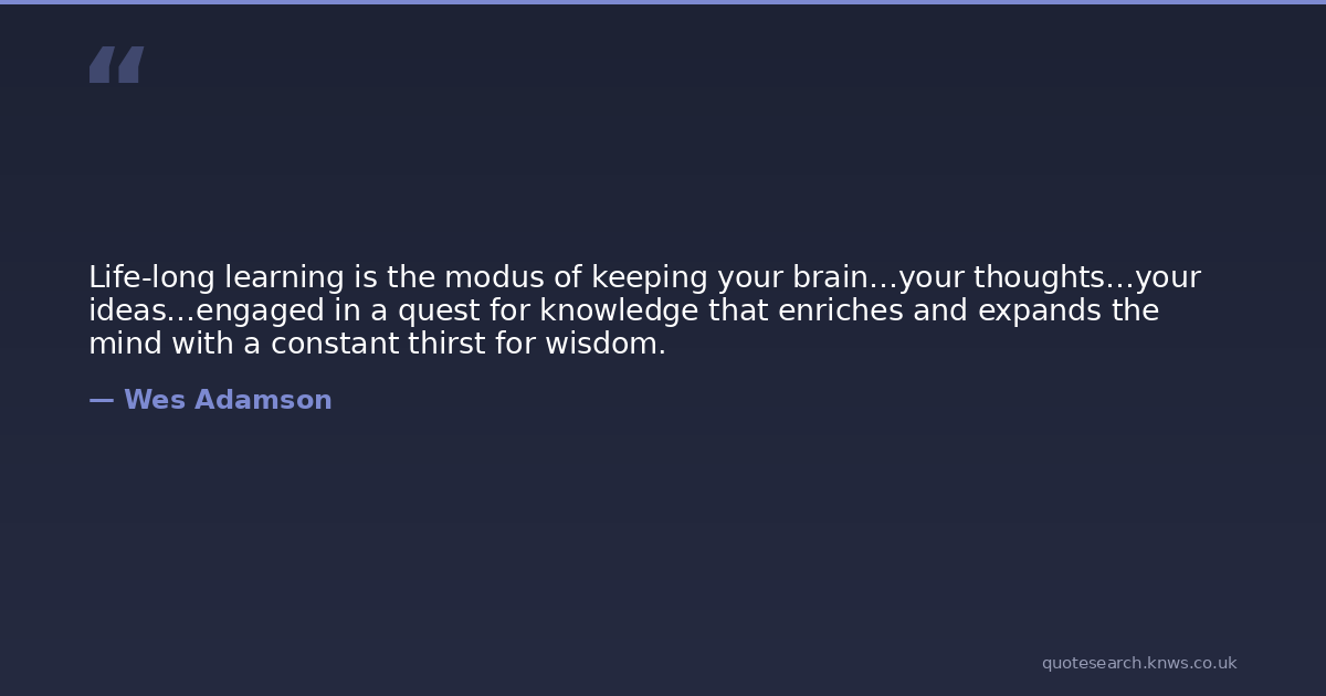 Life-long learning is the modus of keeping your brain…your thoughts…your ideas…engaged in a quest for knowledge that enriches and expands the mind with a constant thirst for wisdom.