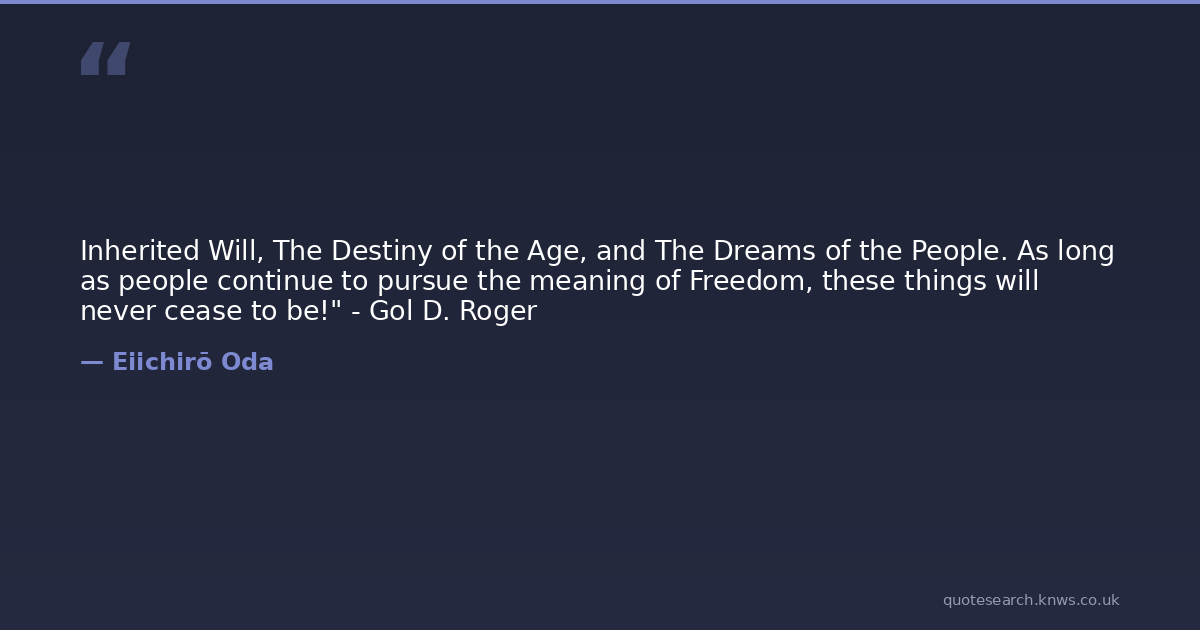 Inherited Will, The Destiny of the Age, and The Dreams of the People. As long as people continue to pursue the meaning of Freedom, these things will never cease to be!" - Gol D. Roger