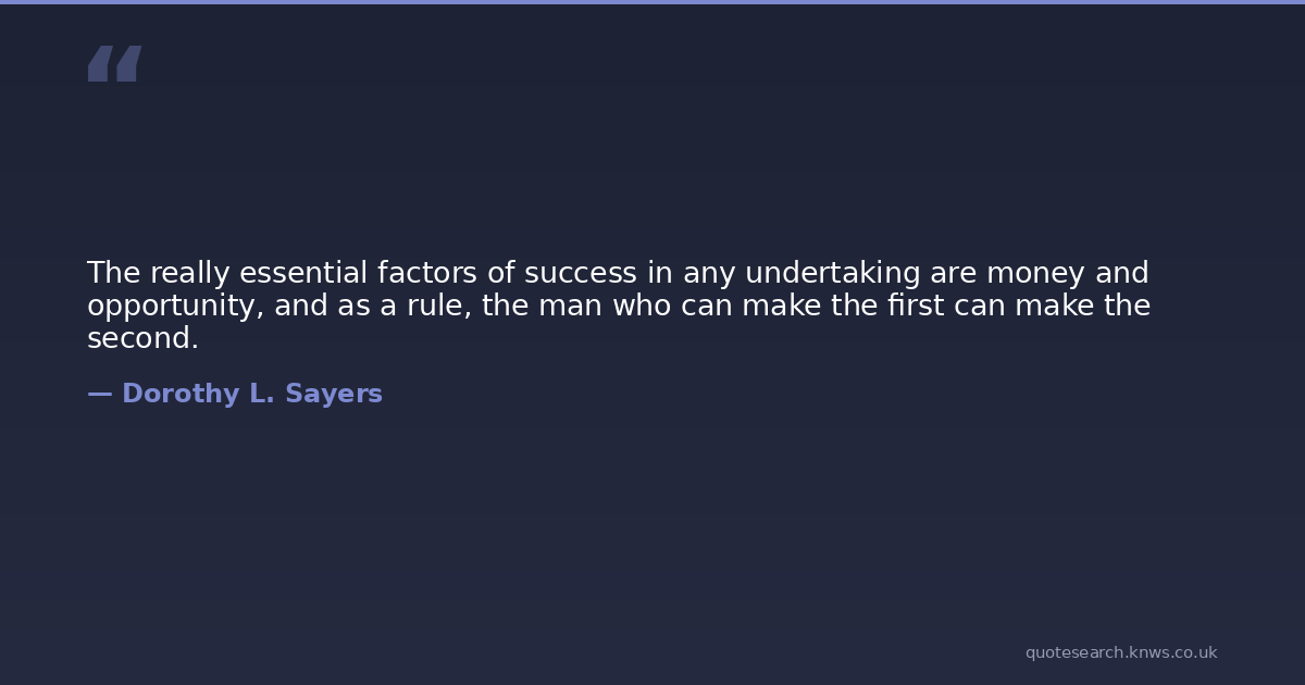 The really essential factors of success in any undertaking are money and opportunity, and as a rule, the man who can make the first can make the second.