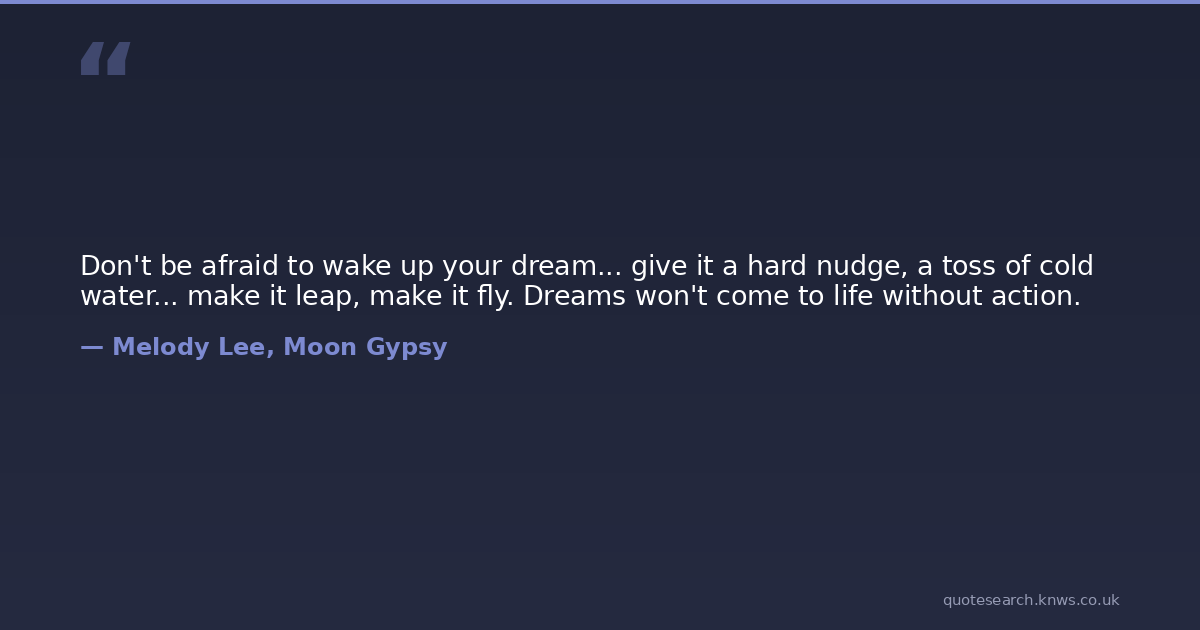 Don't be afraid to wake up your dream... give it a hard nudge, a toss of cold water... make it leap, make it fly. Dreams won't come to life without action.