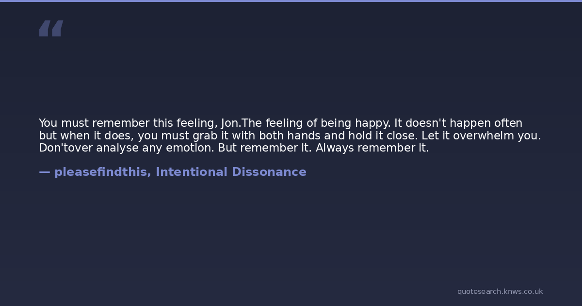 You must remember this feeling, Jon.The feeling of being happy. It doesn't happen often but when it does, you must grab it with both hands and hold it close. Let it overwhelm you. Don'tover analyse any emotion. But remember it. Always remember it.