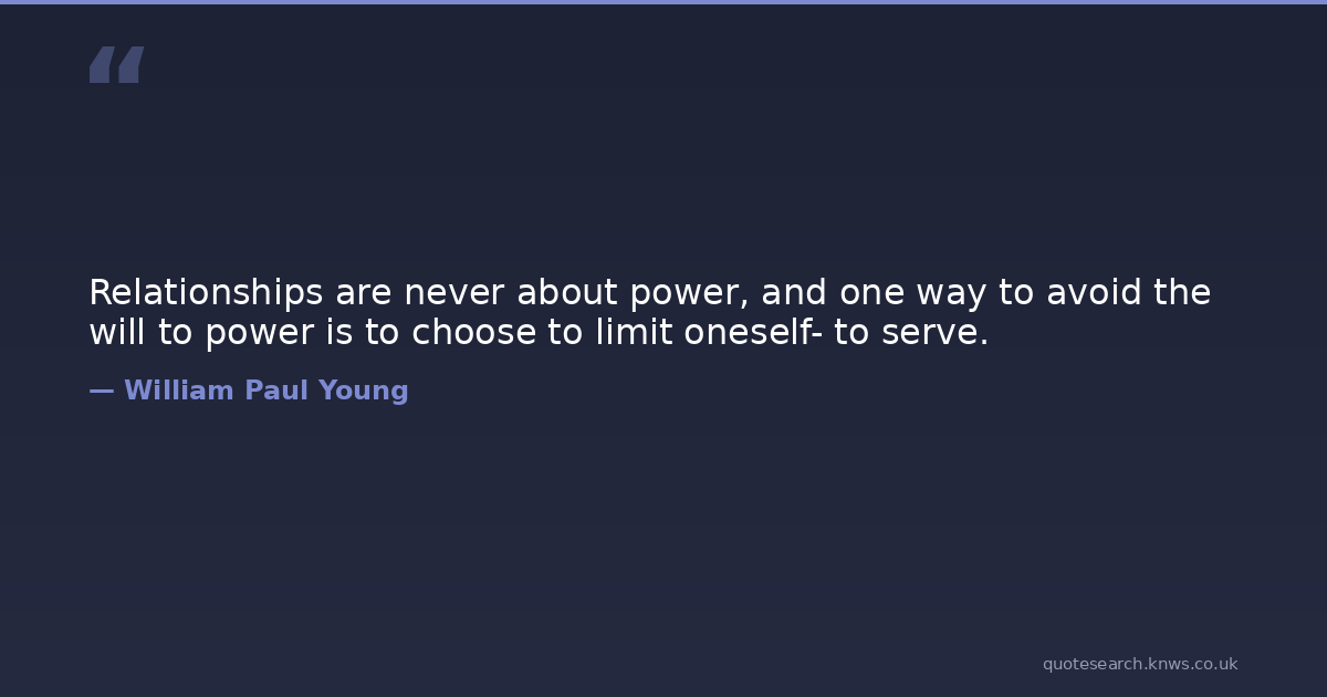 Relationships are never about power, and one way to avoid the will to power is to choose to limit oneself- to serve.