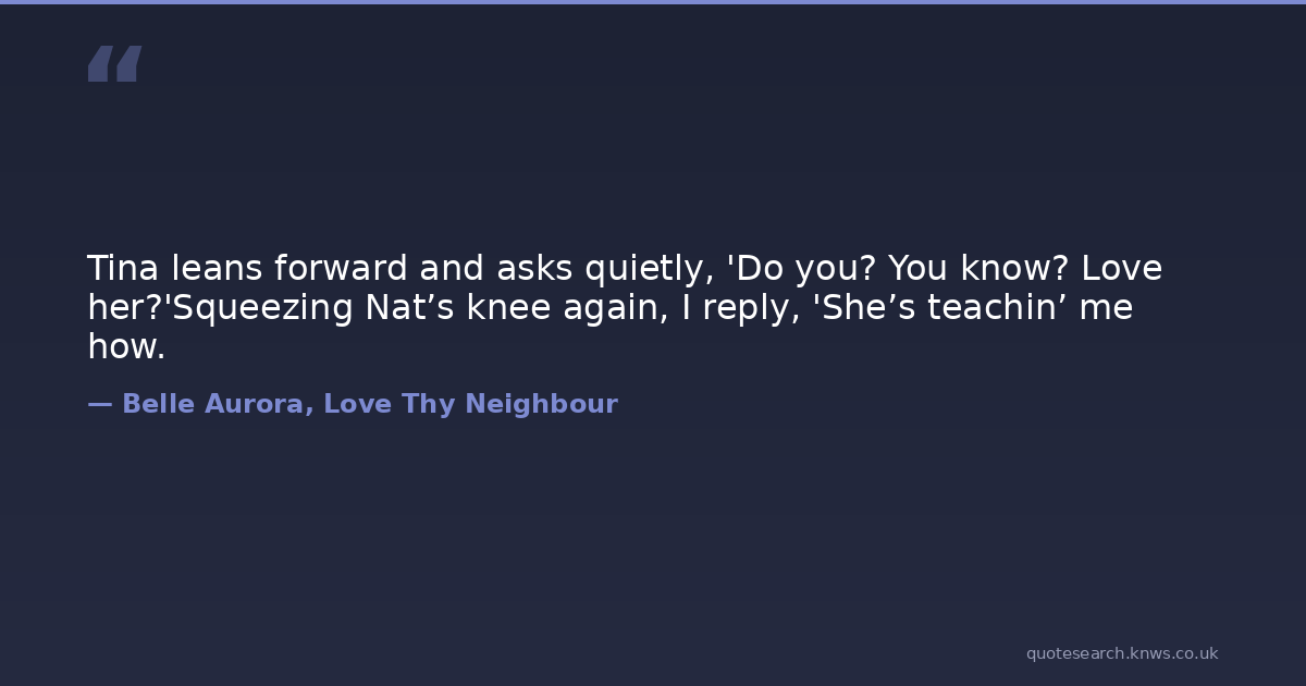 Tina leans forward and asks quietly, 'Do you? You know? Love her?'Squeezing Nat’s knee again, I reply, 'She’s teachin’ me how.