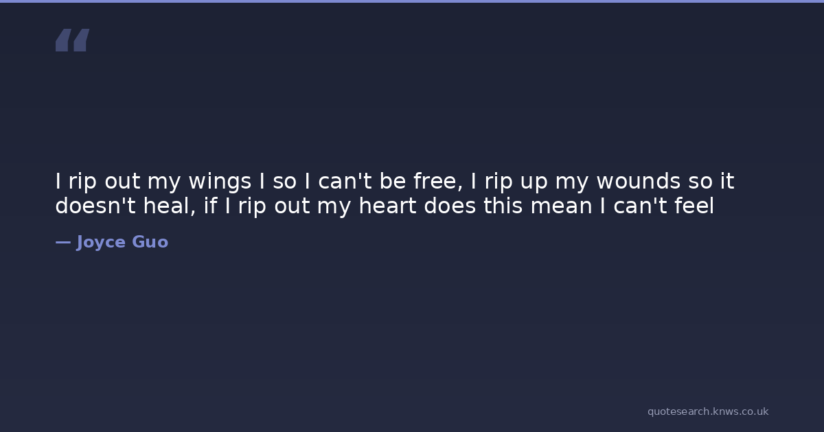 I rip out my wings I so I can't be free, I rip up my wounds so it doesn't heal, if I rip out my heart does this mean I can't feel