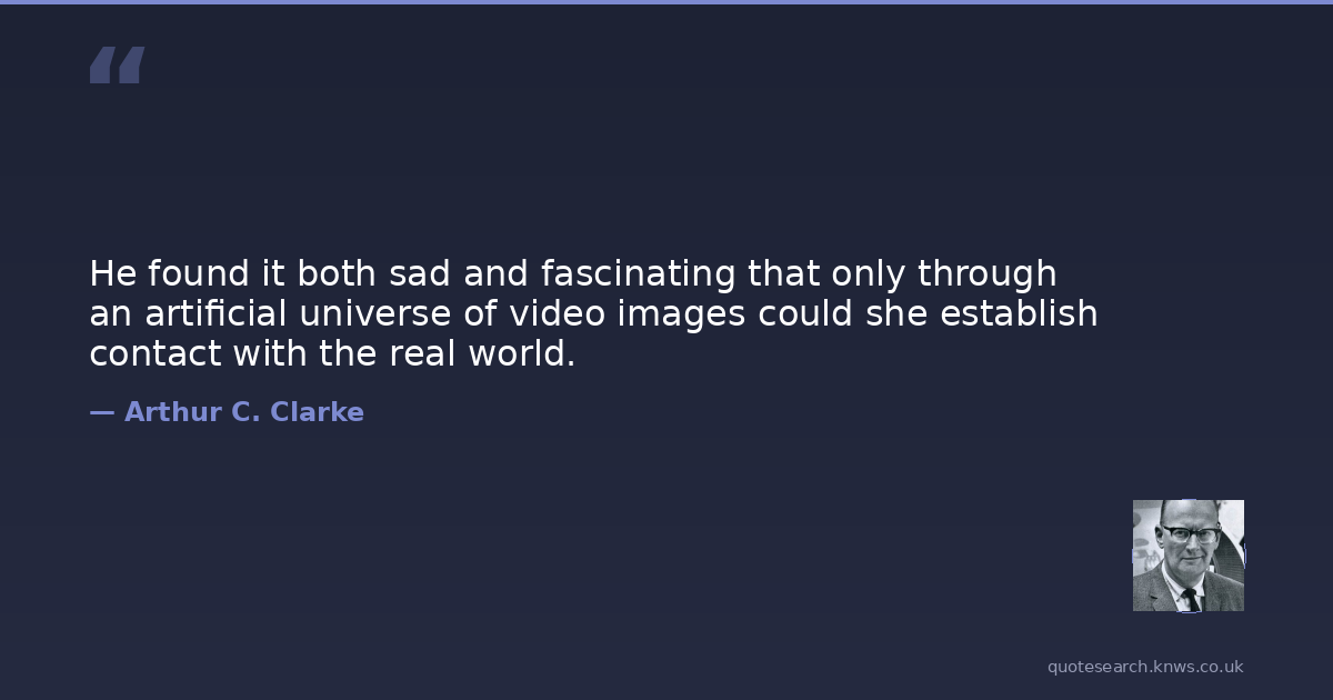 He found it both sad and fascinating that only through an artificial universe of video images could she establish contact with the real world.