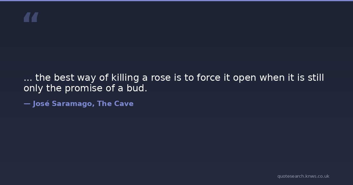 ... the best way of killing a rose is to force it open when it is still only the promise of a bud. relationships Download Image Share on X Share on Facebook Copy Link