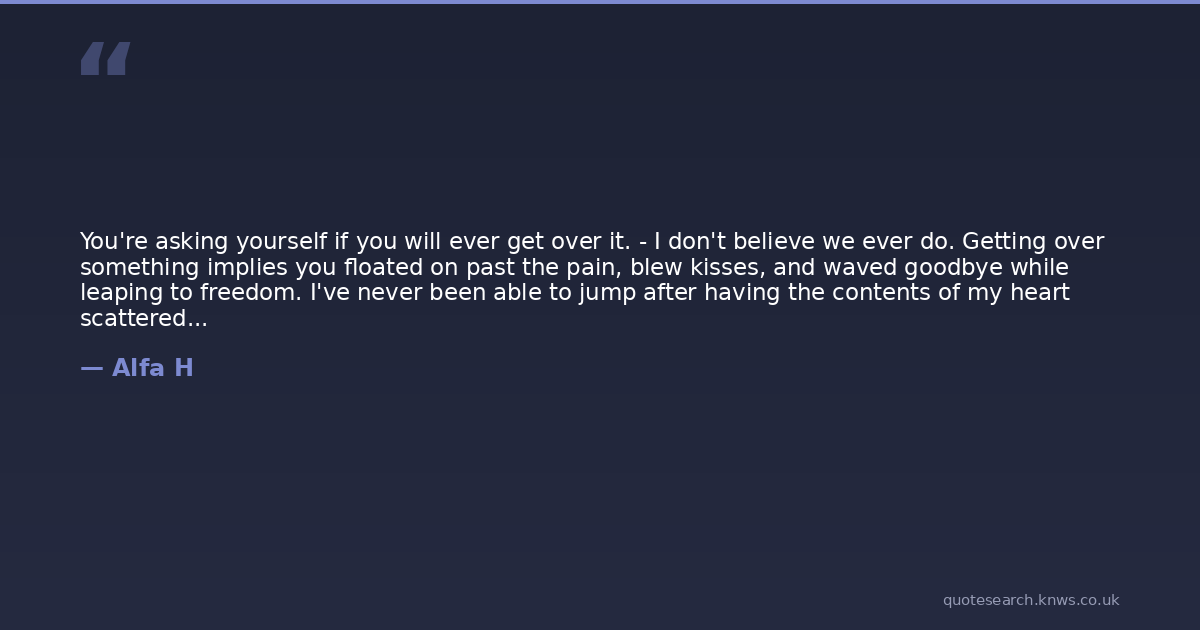 You're asking yourself if you will ever get over it. - I don't believe we ever do. Getting over something implies you floated on past the pain, blew kisses, and waved goodbye while leaping to freedom. I've never been able to jump after having the contents of my heart scattered and sewn over fields that will produce memory-laden blooms. The thing is... you get through it. But the seeds have been planted. Those memories grow. And every morning I still hear: 'He loved me. He loved me not.