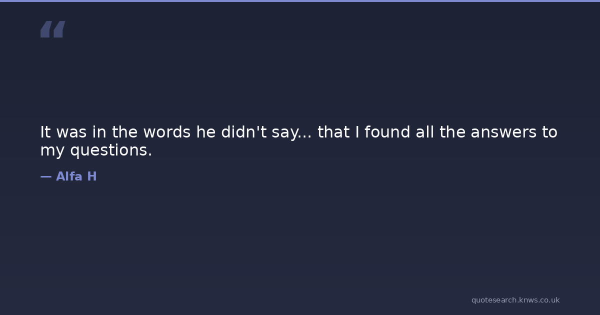 It was in the words he didn't say... that I found all the answers to my questions. life love poetry questions relationships words Download Image Share on X Share on Facebook Copy Link