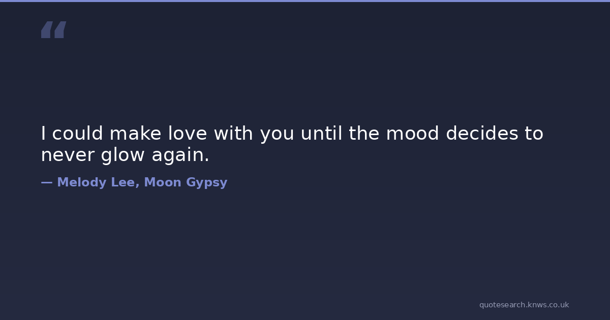 I could make love with you until the mood decides to never glow again. love moon passion poetry relationships Download Image Share on X Share on Facebook Copy Link
