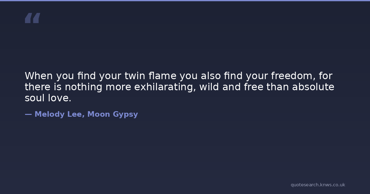 When you find your twin flame you also find your freedom, for there is nothing more exhilarating, wild and free than absolute soul love.