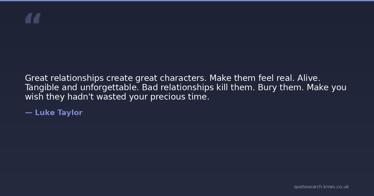 Great relationships create great characters. Make them feel real. Alive. Tangible and unforgettable. Bad relationships kill them. Bury them. Make you wish they hadn't wasted your precious time.