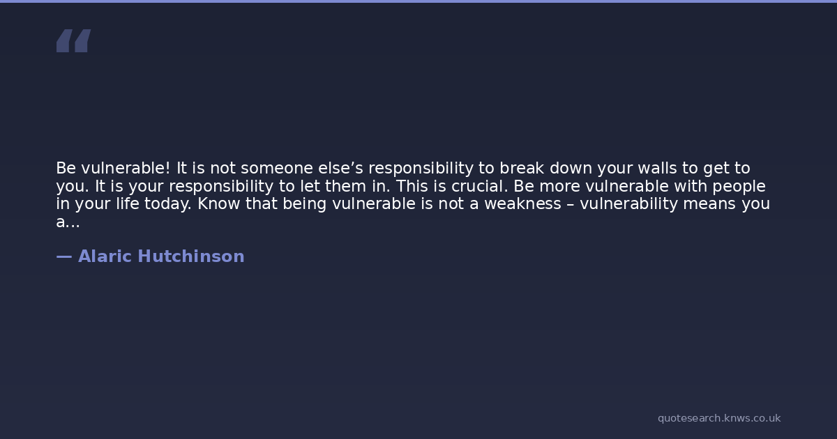 Be vulnerable! It is not someone else’s responsibility to break down your walls to get to you. It is your responsibility to let them in. This is crucial. Be more vulnerable with people in your life today. Know that being vulnerable is not a weakness – vulnerability means you are strong and secure enough within yourself to walk outside without your armor on.