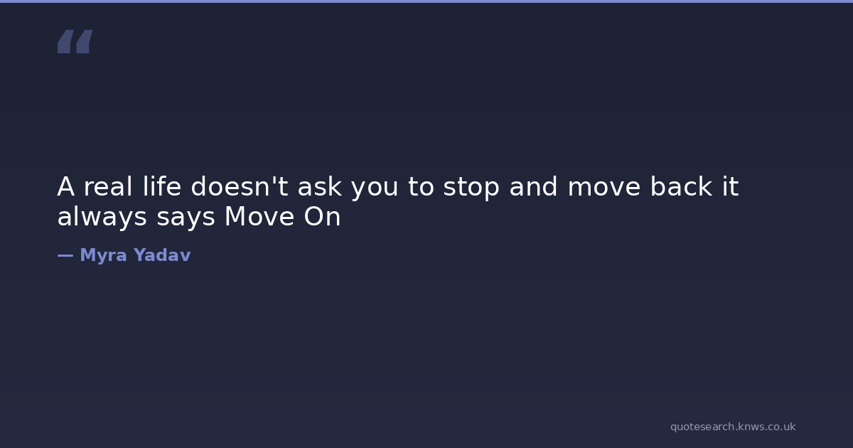 A real life doesn't ask you to stop and move back it always says Move On happiness-in-life life-inspiration motivational success-mantra Download Image Share on X Share on Facebook Copy Link