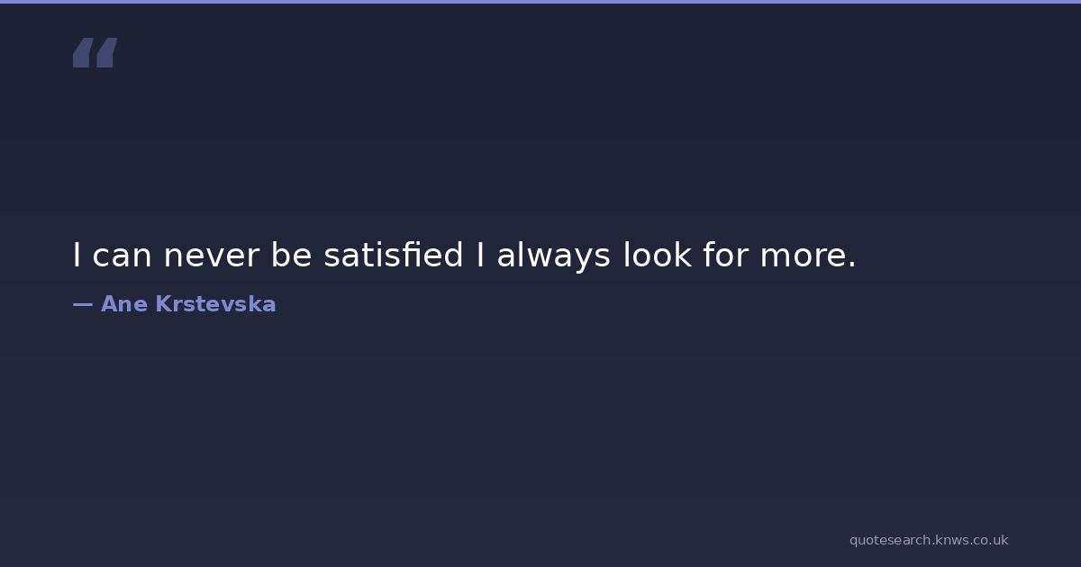 I can never be satisfied I always look for more. inspirational motivational Download Image Share on X Share on Facebook Copy Link