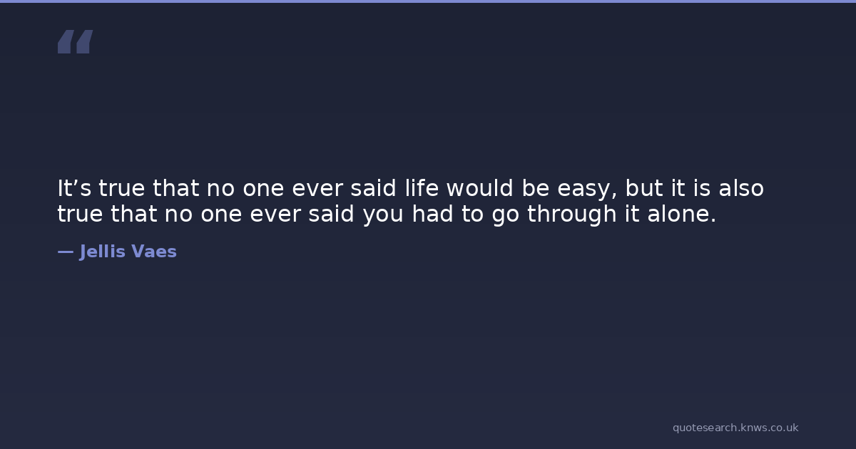 It’s true that no one ever said life would be easy, but it is also true that no one ever said you had to go through it alone.