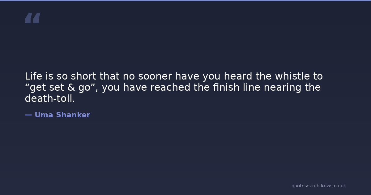 Life is so short that no sooner have you heard the whistle to “get set & go”, you have reached the finish line nearing the death-toll.