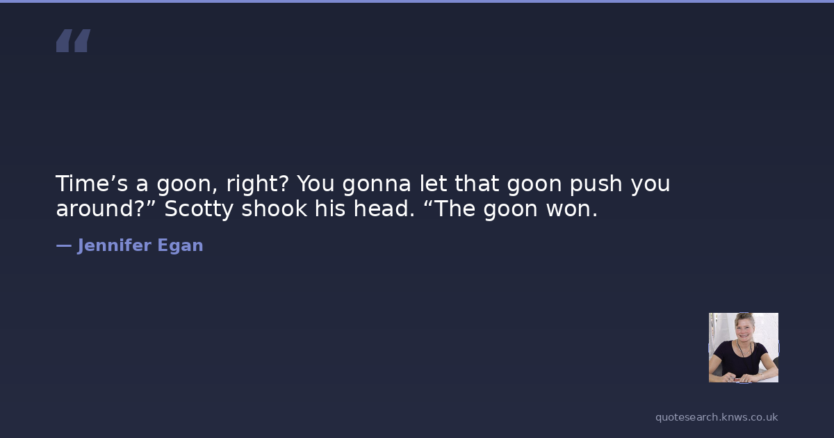 Time’s a goon, right? You gonna let that goon push you around?” Scotty shook his head. “The goon won.
