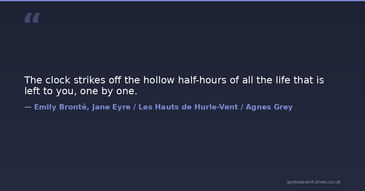 The clock strikes off the hollow half-hours of all the life that is left to you, one by one.