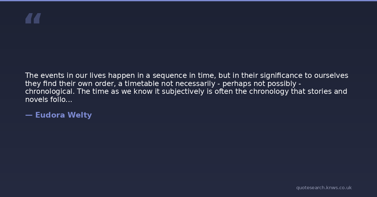 The events in our lives happen in a sequence in time, but in their significance to ourselves they find their own order, a timetable not necessarily - perhaps not possibly - chronological. The time as we know it subjectively is often the chronology that stories and novels follow: it is the continuous thread of revelation.