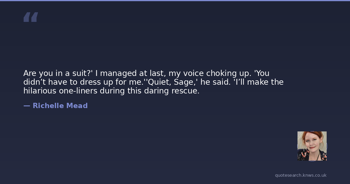 Are you in a suit?' I managed at last, my voice choking up. 'You didn’t have to dress up for me.''Quiet, Sage,' he said. 'I’ll make the hilarious one-liners during this daring rescue.