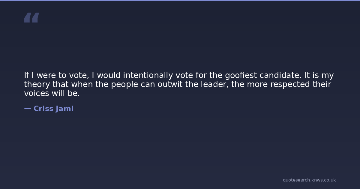 If I were to vote, I would intentionally vote for the goofiest candidate. It is my theory that when the people can outwit the leader, the more respected their voices will be.