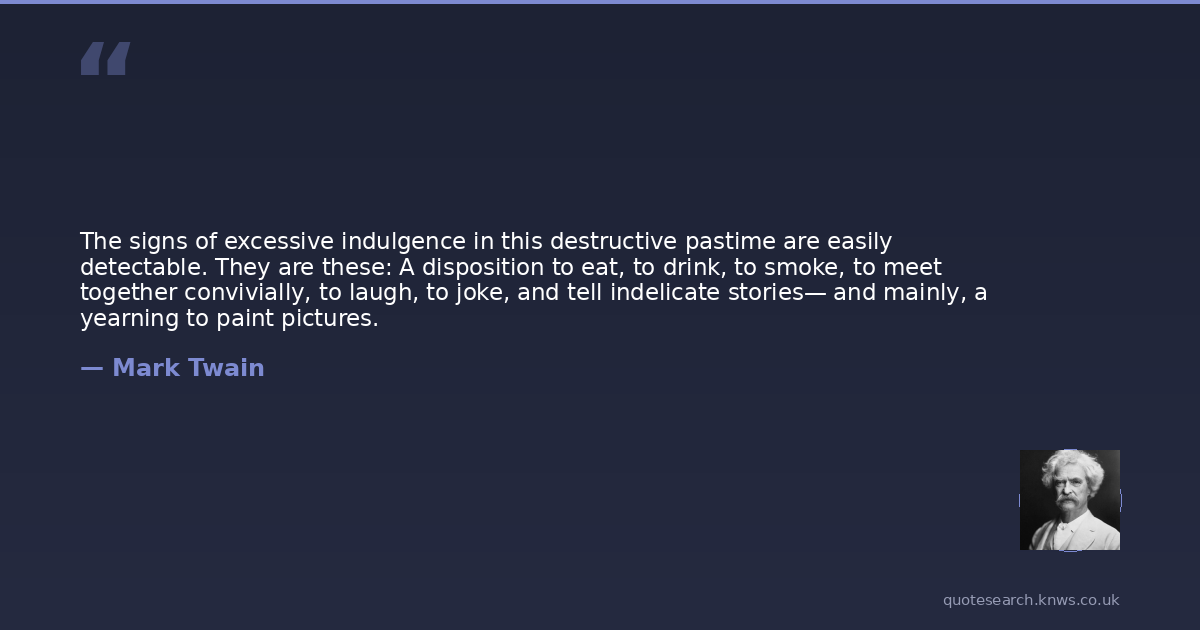 The signs of excessive indulgence in this destructive pastime are easily detectable. They are these: A disposition to eat, to drink, to smoke, to meet together convivially, to laugh, to joke, and tell indelicate stories— and mainly, a yearning to paint pictures.