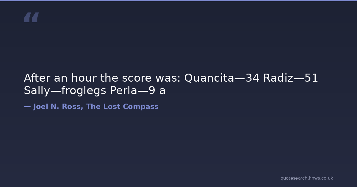 After an hour the score was: Quancita—34 Radiz—51 Sally—froglegs Perla—9 a