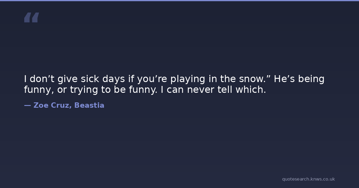 I don’t give sick days if you’re playing in the snow.” He’s being funny, or trying to be funny. I can never tell which.
