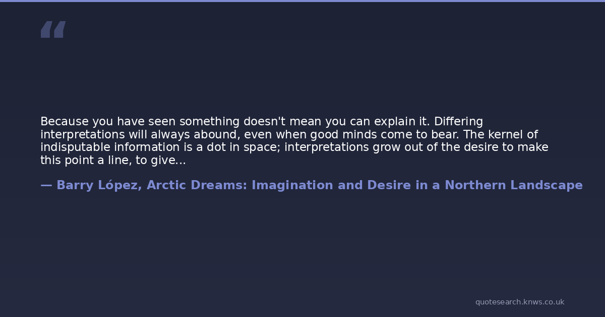 Because you have seen something doesn't mean you can explain it. Differing interpretations will always abound, even when good minds come to bear. The kernel of indisputable information is a dot in space; interpretations grow out of the desire to make this point a line, to give it direction. The directions in which it can be sent, the uses to which it can be put by a culturally, professionally, and geographically diverse society are almost without limit. The possibilities make good scientists chary.