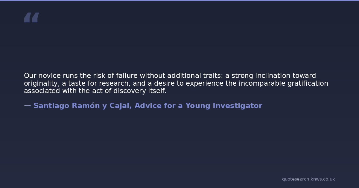 Our novice runs the risk of failure without additional traits: a strong inclination toward originality, a taste for research, and a desire to experience the incomparable gratification associated with the act of discovery itself.