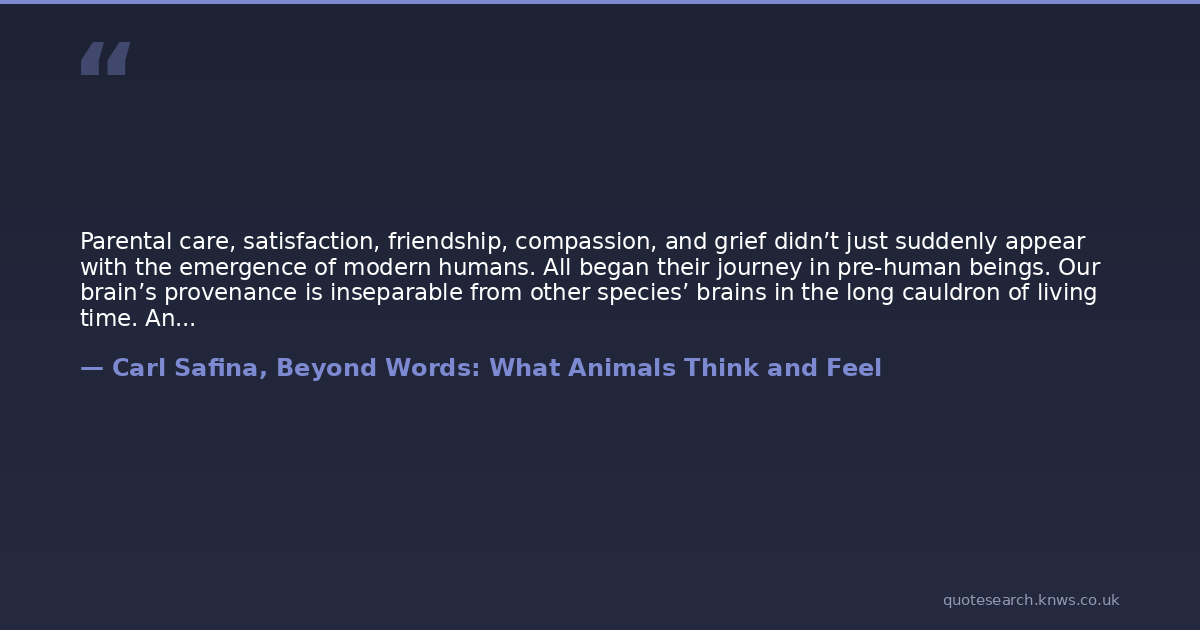 Parental care, satisfaction, friendship, compassion, and grief didn’t just suddenly appear with the emergence of modern humans. All began their journey in pre-human beings. Our brain’s provenance is inseparable from other species’ brains in the long cauldron of living time. And thus, so is our mind.