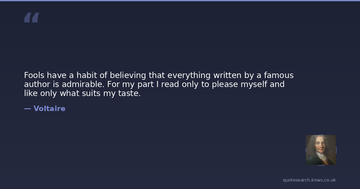 Fools have a habit of believing that everything written by a famous author is admirable. For my part I read only to please myself and like only what suits my taste.