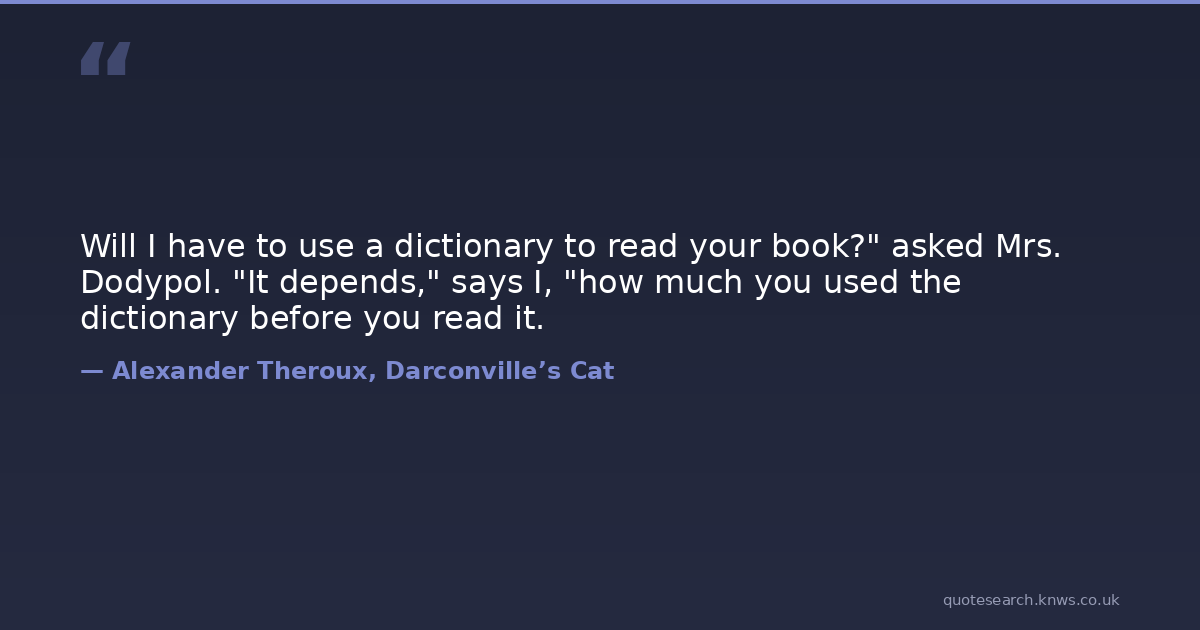 Will I have to use a dictionary to read your book?" asked Mrs. Dodypol. "It depends," says I, "how much you used the dictionary before you read it.