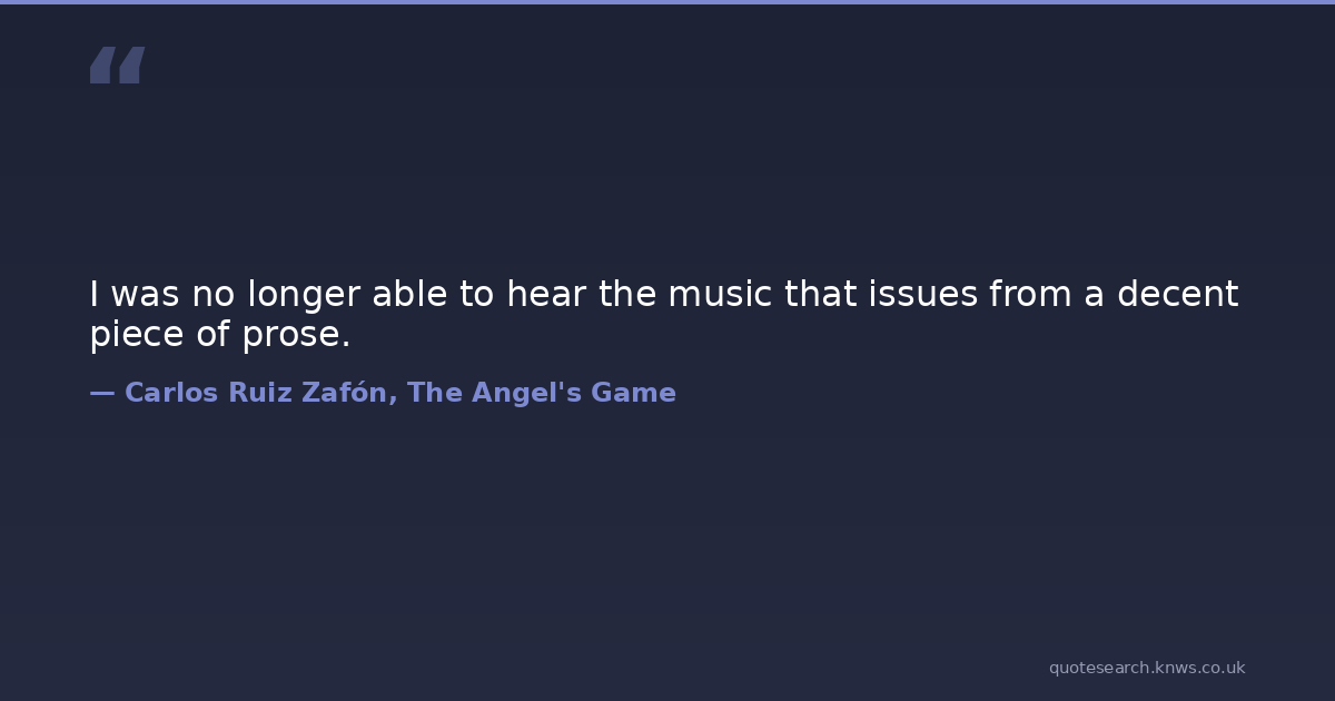 I was no longer able to hear the music that issues from a decent piece of prose. books music Download Image Share on X Share on Facebook Copy Link