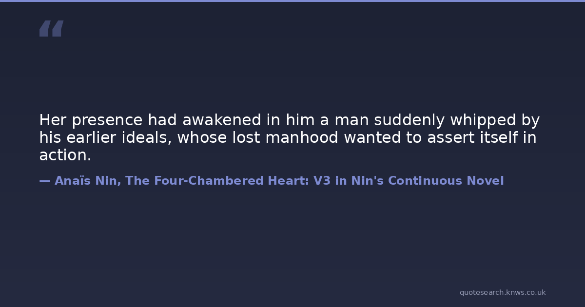 Her presence had awakened in him a man suddenly whipped by his earlier ideals, whose lost manhood wanted to assert itself in action.