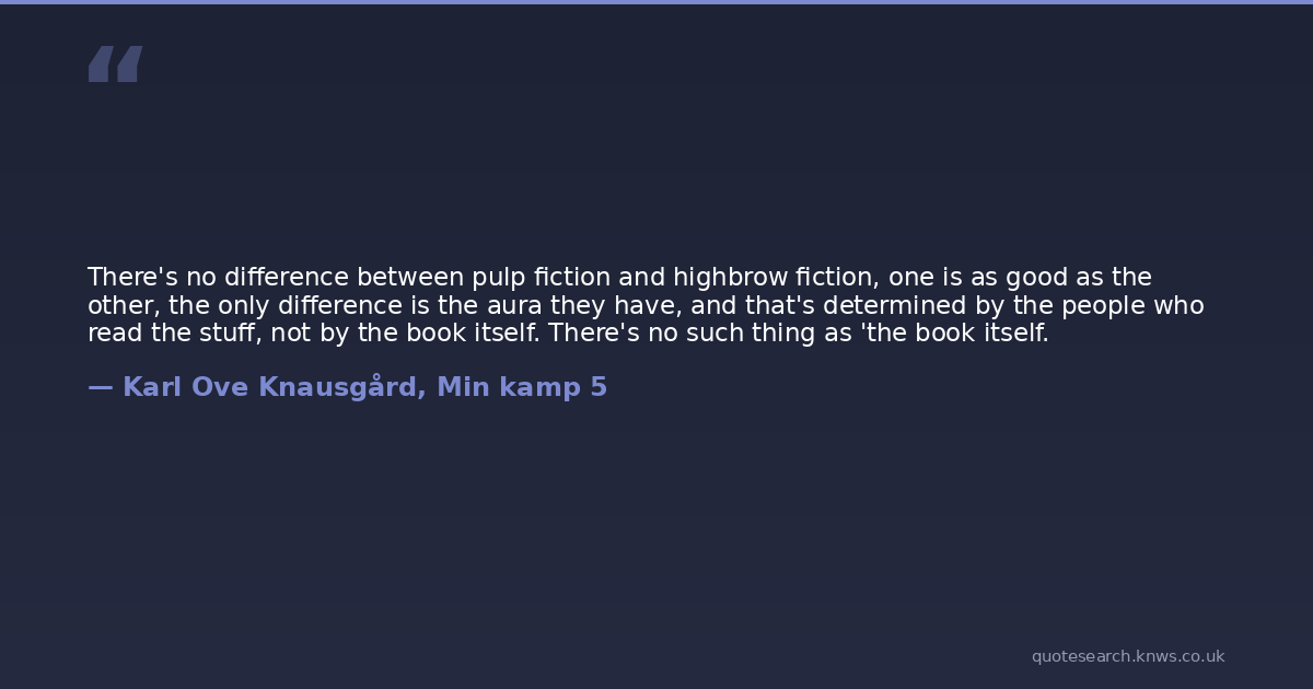 There's no difference between pulp fiction and highbrow fiction, one is as good as the other, the only difference is the aura they have, and that's determined by the people who read the stuff, not by the book itself. There's no such thing as 'the book itself.