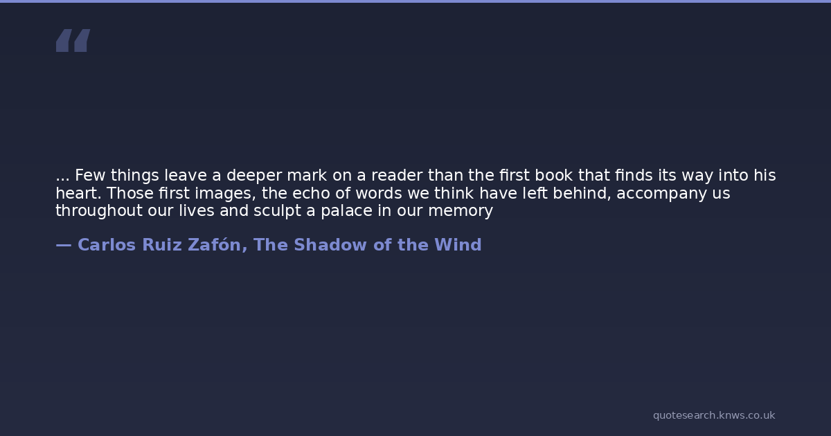 ... Few things leave a deeper mark on a reader than the first book that finds its way into his heart. Those first images, the echo of words we think have left behind, accompany us throughout our lives and sculpt a palace in our memory