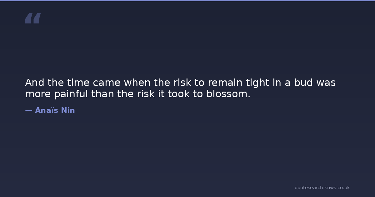 And the time came when the risk to remain tight in a bud was more painful than the risk it took to blossom.