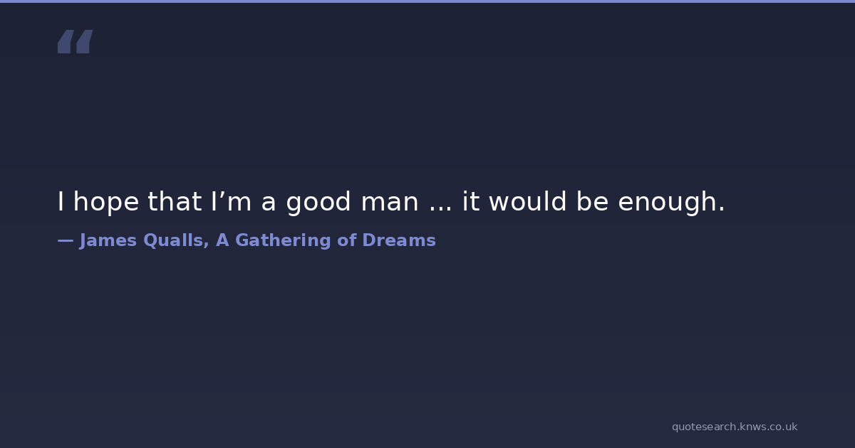 I hope that I’m a good man ... it would be enough. personal-growth philosophical spirituality Download Image Share on X Share on Facebook Copy Link