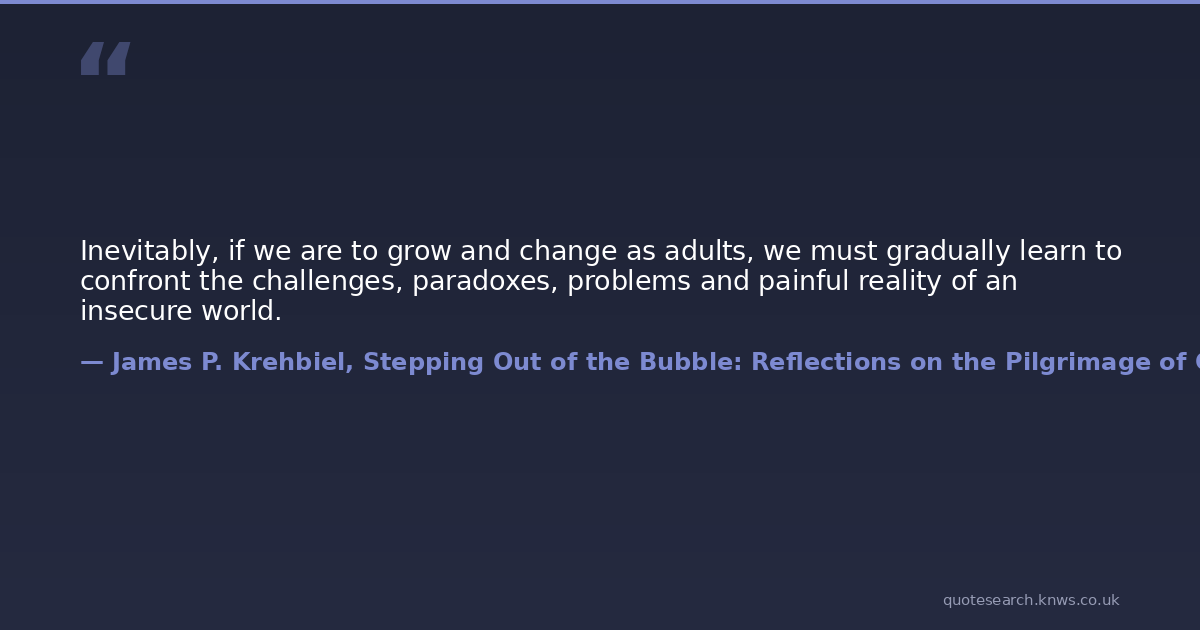 Inevitably, if we are to grow and change as adults, we must gradually learn to confront the challenges, paradoxes, problems and painful reality of an insecure world.