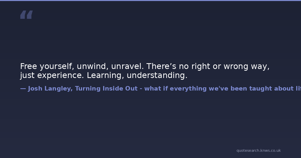 Free yourself, unwind, unravel. There’s no right or wrong way, just experience. Learning, understanding.