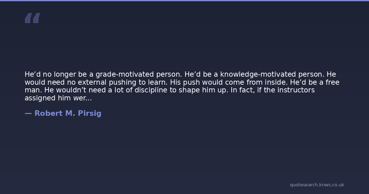 He’d no longer be a grade-motivated person. He’d be a knowledge-motivated person. He would need no external pushing to learn. His push would come from inside. He’d be a free man. He wouldn’t need a lot of discipline to shape him up. In fact, if the instructors assigned him were slacking on the job he would be likely to shape them up by asking rude questions. He’d be there to learn something, would be paying to learn something and they’d better come up with it.Motivation of this sort, once it catches hold, is a ferocious force...