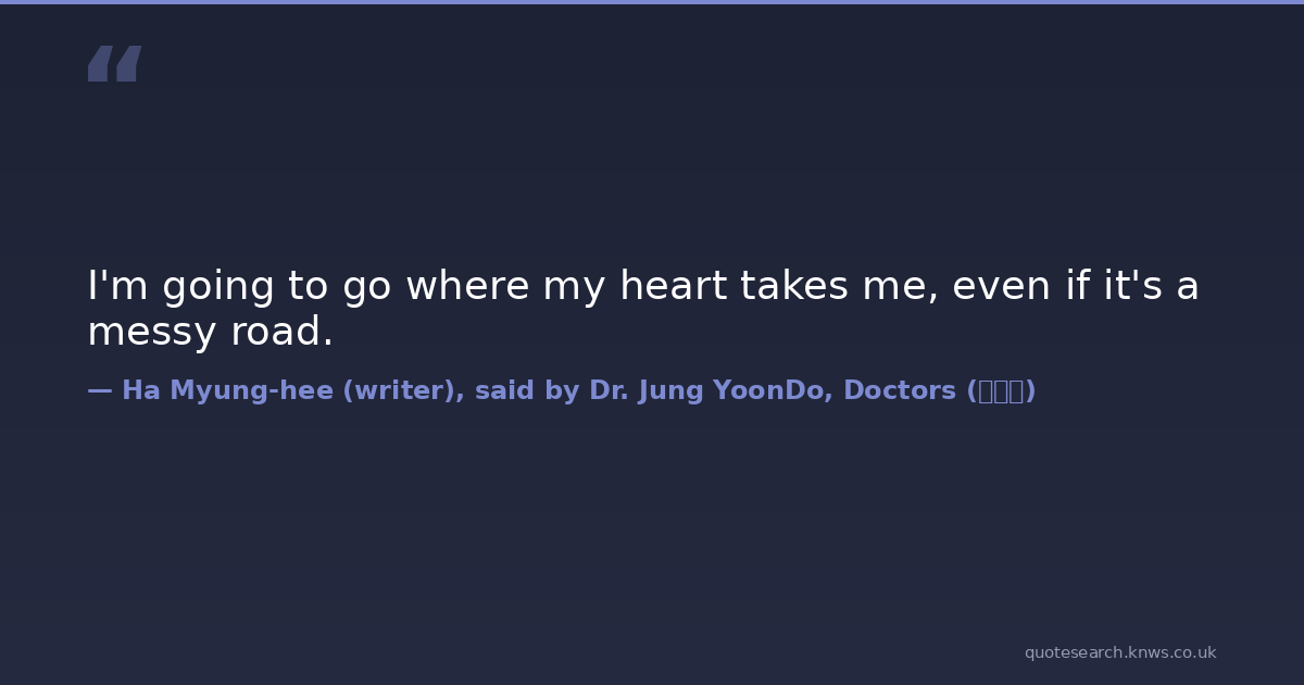 I'm going to go where my heart takes me, even if it's a messy road. doctors english-translation korean korean-dramas love love-quotes 닥터스 Download Image Share on X Share on Facebook Copy Link