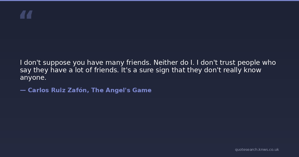 I don't suppose you have many friends. Neither do I. I don't trust people who say they have a lot of friends. It's a sure sign that they don't really know anyone.