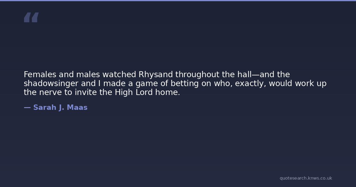 Females and males watched Rhysand throughout the hall—and the shadowsinger and I made a game of betting on who, exactly, would work up the nerve to invite the High Lord home.