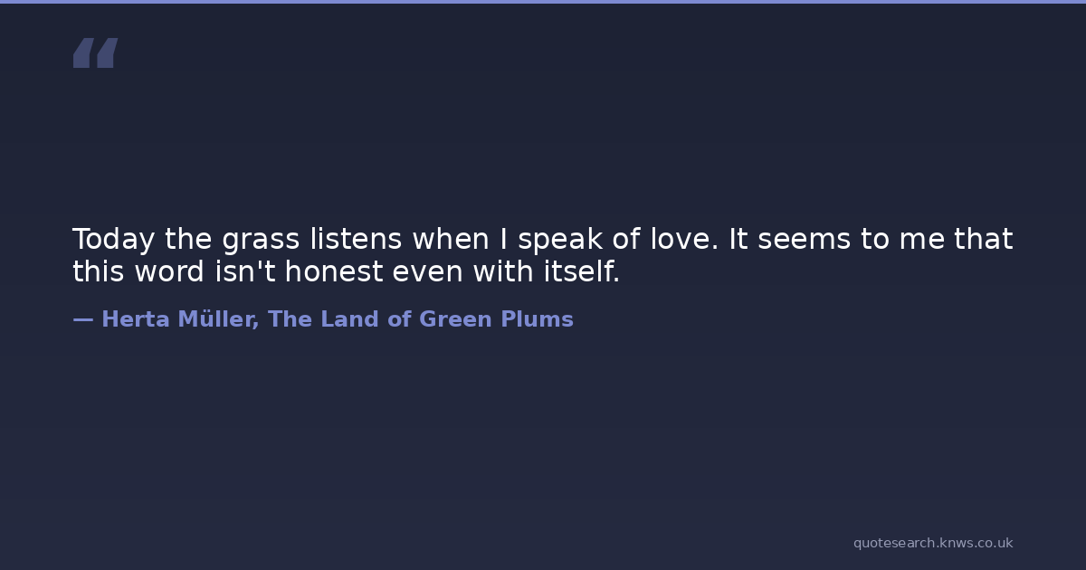 Today the grass listens when I speak of love. It seems to me that this word isn't honest even with itself.