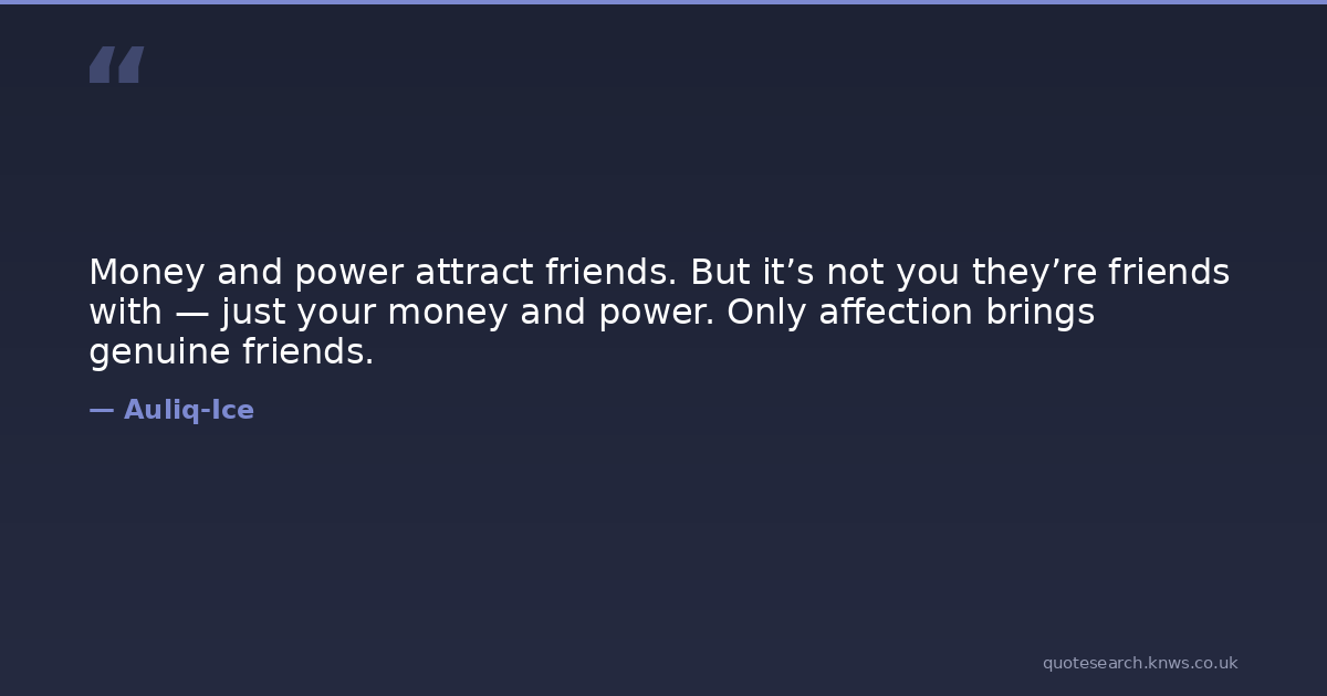 Money and power attract friends. But it’s not you they’re friends with — just your money and power. Only affection brings genuine friends.