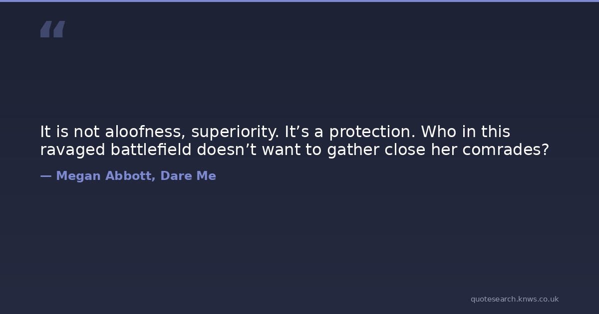It is not aloofness, superiority. It’s a protection. Who in this ravaged battlefield doesn’t want to gather close her comrades?