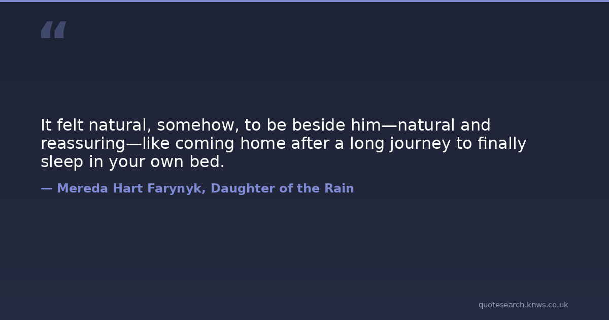 It felt natural, somehow, to be beside him—natural and reassuring—like coming home after a long journey to finally sleep in your own bed.