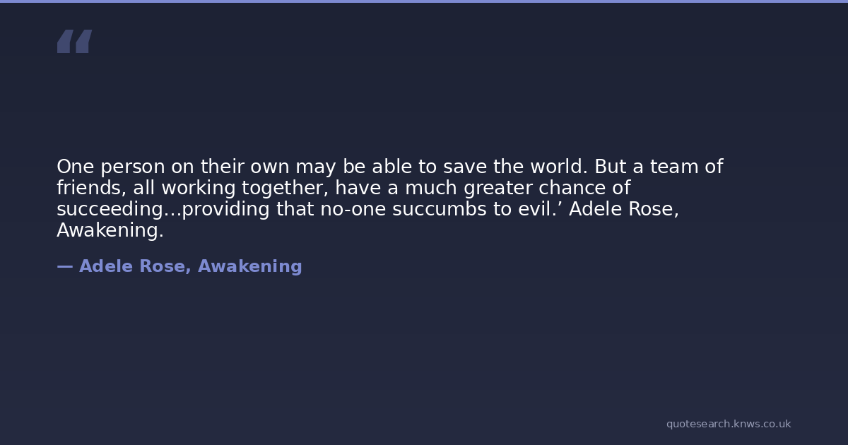 One person on their own may be able to save the world. But a team of friends, all working together, have a much greater chance of succeeding…providing that no-one succumbs to evil.’ Adele Rose, Awakening.